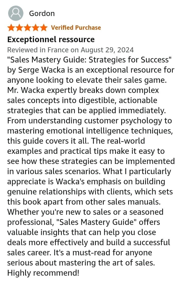 Serge Wacka is an international strategist and sales expert who has worked across Europe, Africa, the Middle East, and North America. He helps experts, companies and sales teams win bigger deals with clarity, cultural intelligence, and a Serve-First approach. Author of Sales Mastery Guide: Strategies for Success, heโs known for turning complex markets into simple, repeatable sales systems.